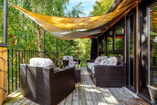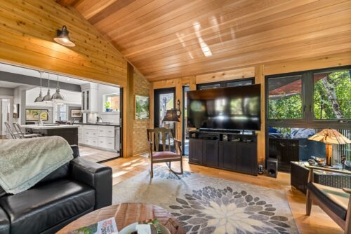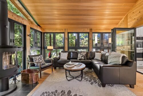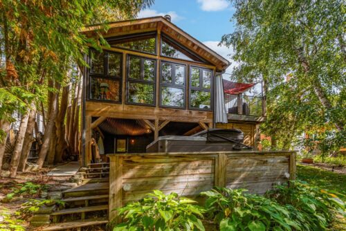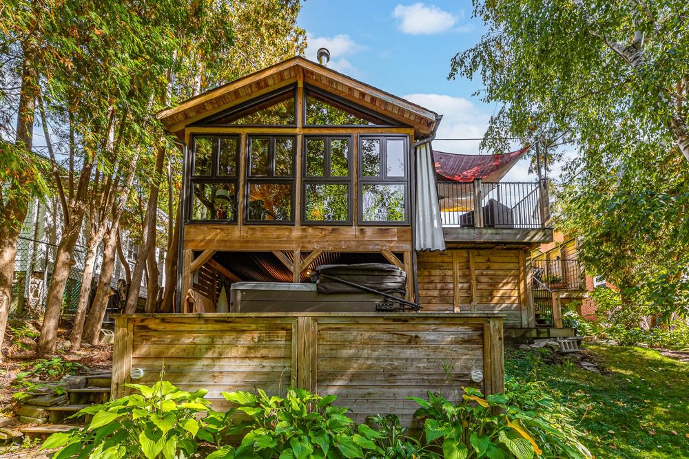The sunroom is a vision. Wood floors, wood ceiling, 27 windows overlooking the backyard and green space, wood-burning Finnish fireplace (WETT certified), and a walkout to a multi-level deck for entertaining. There’s room for an office, an artist’s studio, and a front porch for those relaxing summer evenings. The lower-level houses a laundry, a workshop, and an abundance of storage with a separate entrance. Walk out to a covered patio and the hot tub.