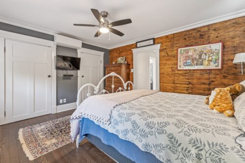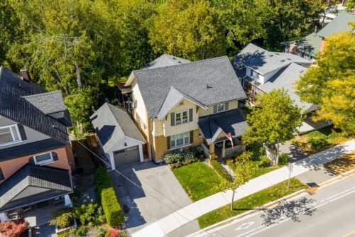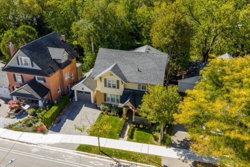 A beautiful century home built in 1917 with 21st-century modern conveniences. Located in Old Newmarket with a main floor family room with a wood-burning fireplace, hot tub, and multi-level decks overlooking gardens, stream, and green space. Perfect location. Walk to school, Main Street, restaurants and bars, Fairy Lake, and walking trails. The house’s history is evident in the original woodwork, wood floors, leaded windows, and French pocket doors. The modern kitchen features quartz counters, 5-burner gas stove, double ovens, a centre island, a 54” commercial refrigerator, a commercial icemaker in the pantry, and a full wall of telescopic patio doors leading to the sunroom.